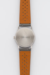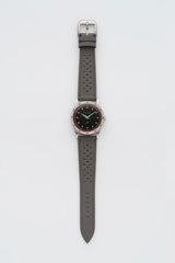 Finally all watches are made of 316L stainless steel, tested for 5ATM, 36mm without crown, 20mm between lugs, 8,5mm thick, powered by a modified Swiss Sellita SW210 manual mouvement with 42 hours power reserve. This watch comes on a Atelier Romane 20mm Racing grey leather strap and a Forstner Official 7-rows 20mm -vintage inspired- beads of rice stainless steel bracelet as well as a leather 'travel" single watch case.
